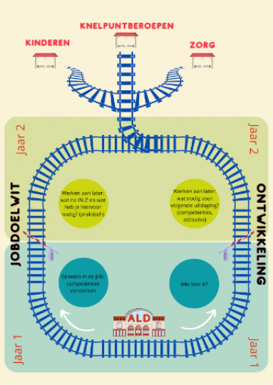 Met onze medewerkers ALD werken we op 2 sporen. Enerzijds zetten we in op het functioneren binnen de huidige job en hebben we hierbij ook van bij het begin van de tewerkstelling aandacht voor het toekomstige jobdoelwit. Anderzijds gaan we, samen met onze medewerkers, aan de slag met hun algemene en persoonlijke ontwikkeling. Op die manier staan ze sterker in het leven, krijgen ze extra handvaten om de huidige job goed uit te voeren en kunnen ze uitdagingen in hun verdere carriere op een beter manier aan(pakken). Het is de bedoeling dat deze sporen gelijktijdig bewandeld worden zodat onze medewerkers na hun tewerkstelling bij ons zoveel als mogelijk klaar zijn voor een volgende uitdaging op de arbeidsmarkt. Als begeleider speel je hierin een belangrijke rol. Maar het is uiteraard de medewerker zelf die de eindverantwoordelijkheid draagt. In dit luik gaan we dieper in op het versterken van competenties en randvoorwaarden binnen de huidige job.